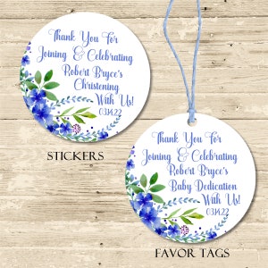 Blue Baby Dedication Sticker Labels, Gender Neutral Blue Baptism Favor ...