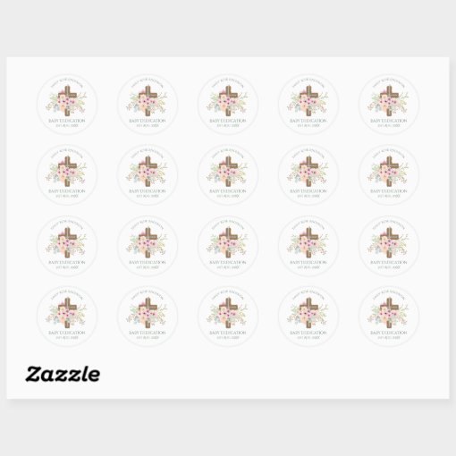 Personalized BABY Dedication Floral Cross Classic Round Sticker | Zazzle