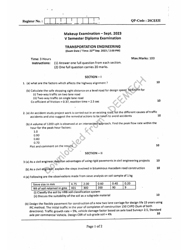 20ce53i Makeup Exam September 2023 QP - Deemech | PDF
