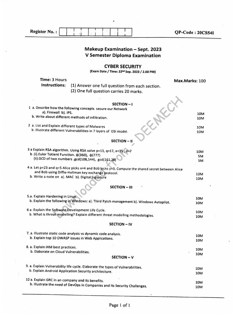 20cs54i Makeup Exam September 2023 QP - Deemech | PDF