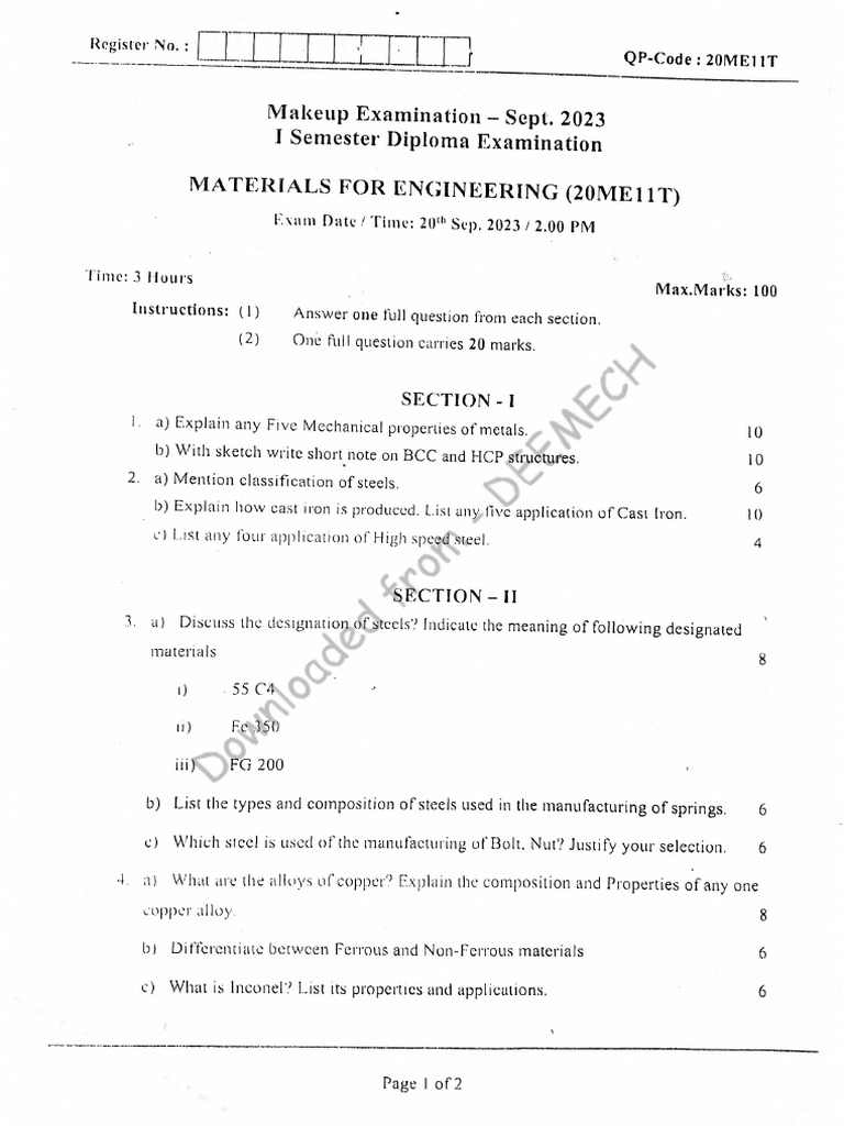 20SC01T Model Paper - 1 - DEEMECH | PDF