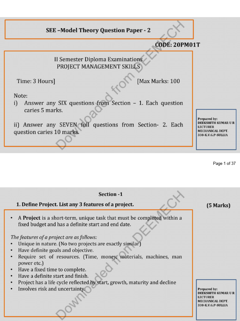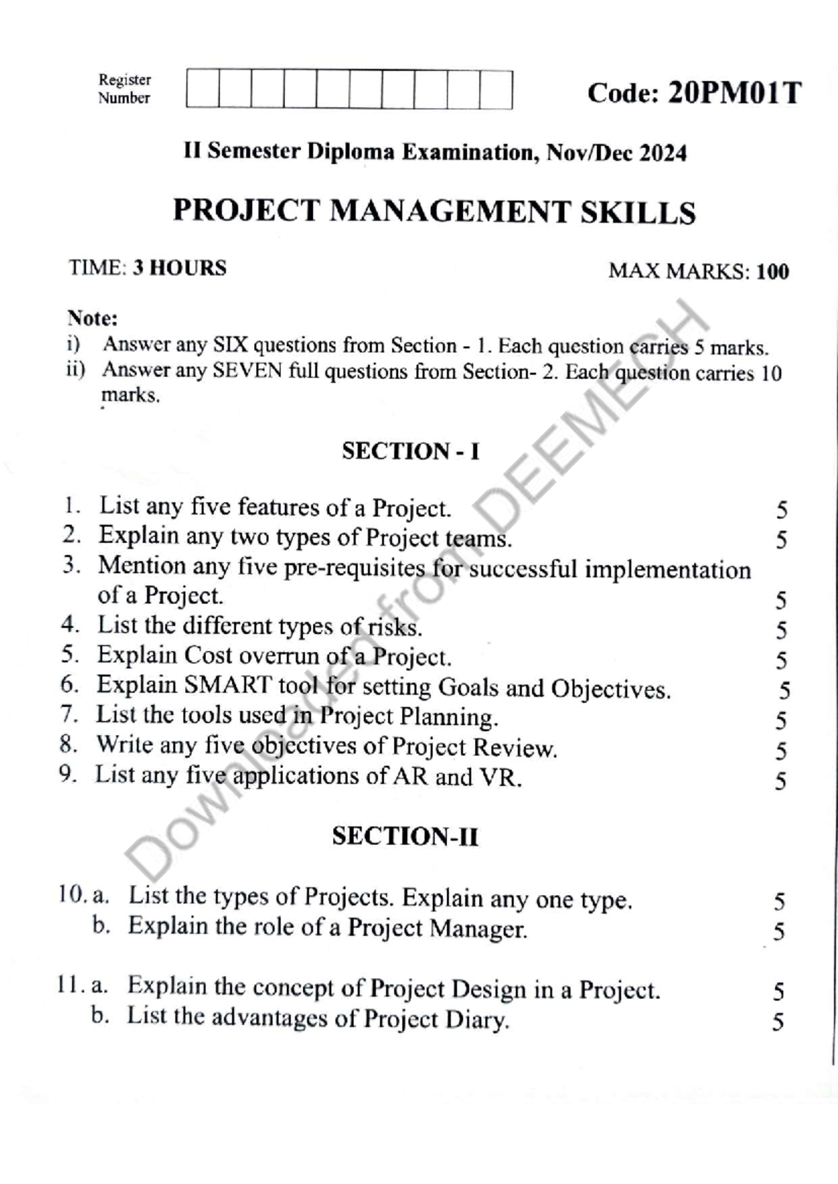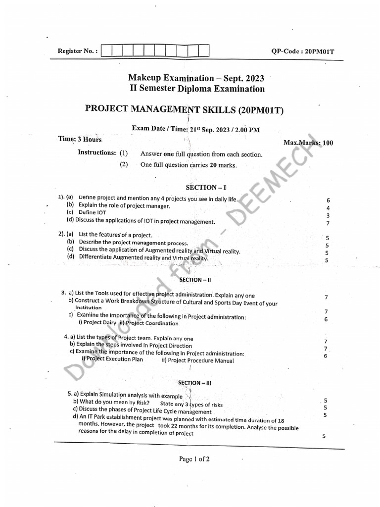 PROJECT MANAGEMENT SKILLS- 20PM01T – DEEMECH