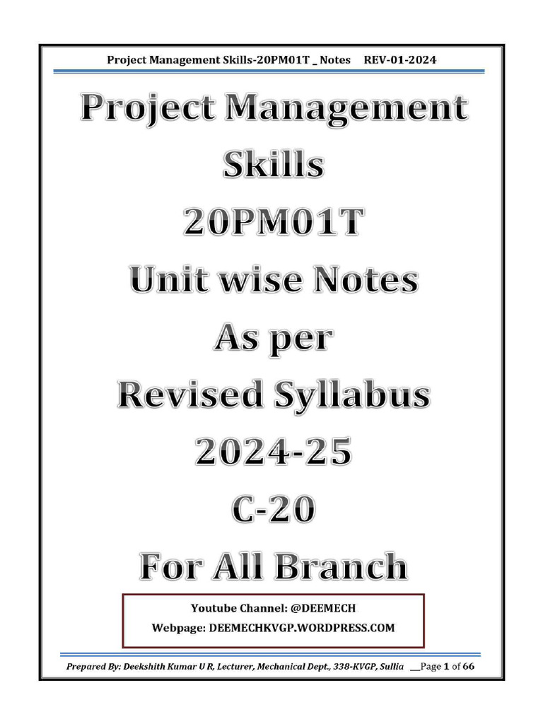 PROJECT MANAGEMENT SKILLS- (20PM01T) – UNIT WISE NOTES – DEEMECH