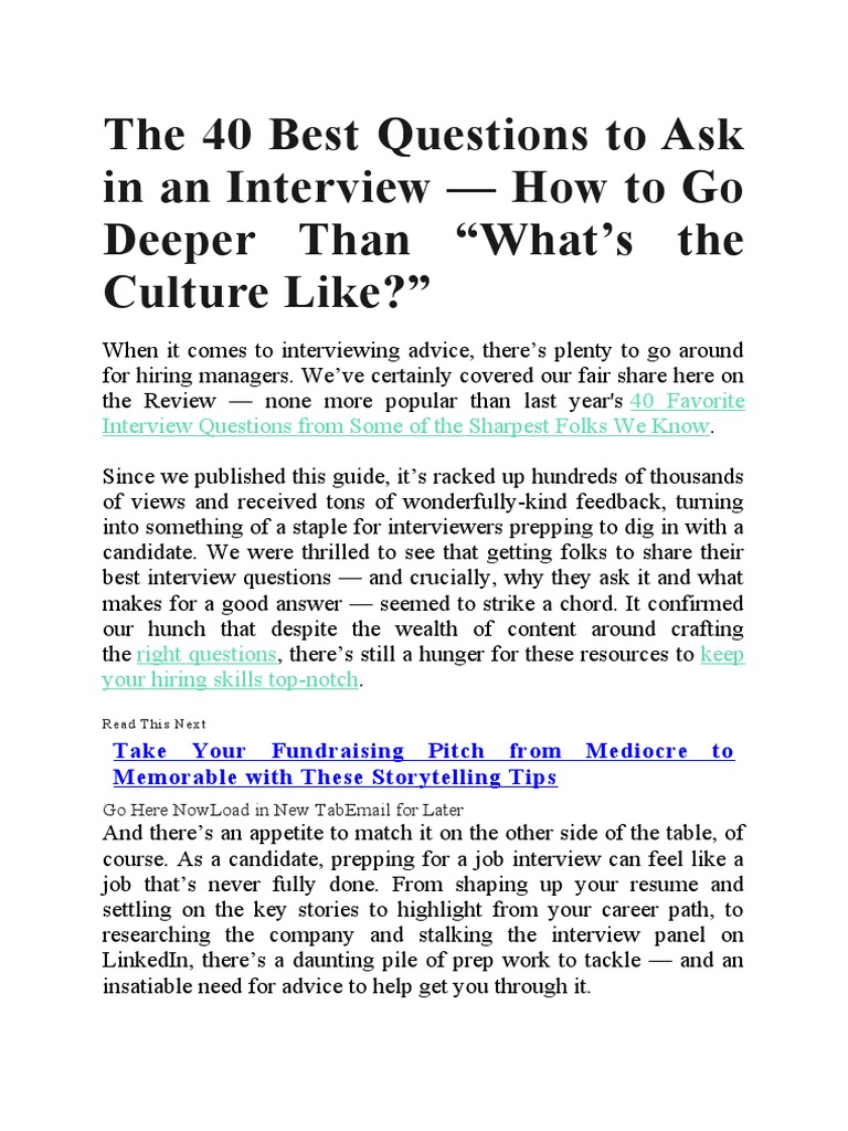 40 Insightful Interview Questions to Ask | PDF | Startup Company ...