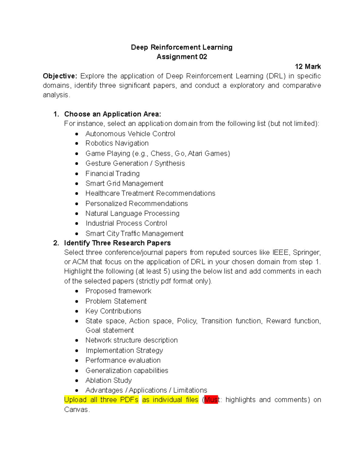 Assignment 02 - Deep Reinforcement Learning Assignment 0 2 12 Mark ...