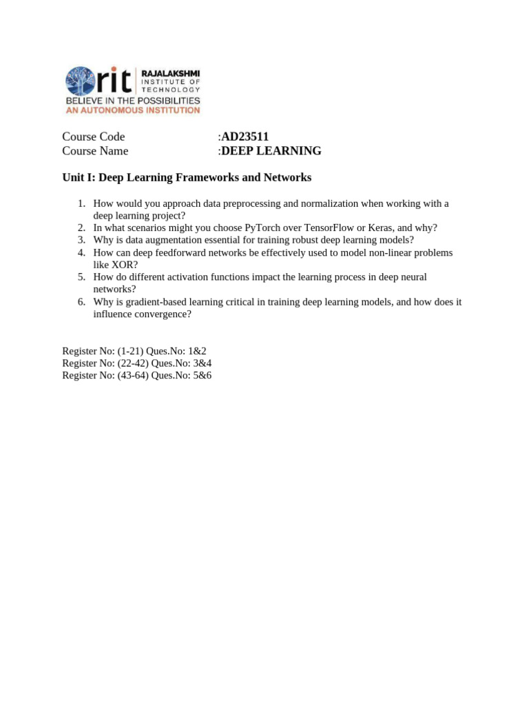Deep Learning Assignment 2 (Subject Code: 410251) - Unit 2 Questions ...
