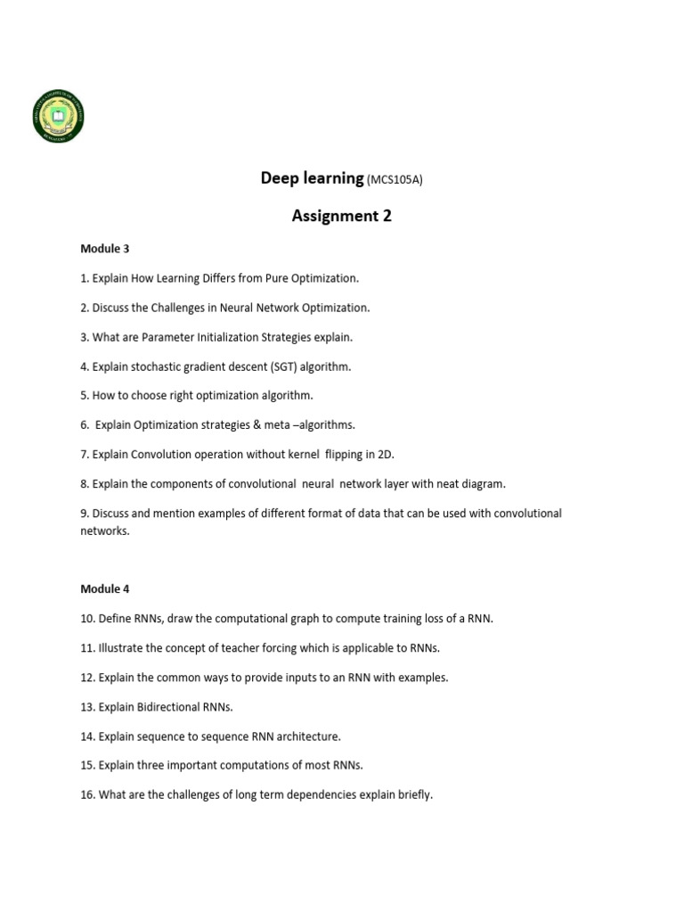 Assignment Question | PDF | Deep Learning | Learning