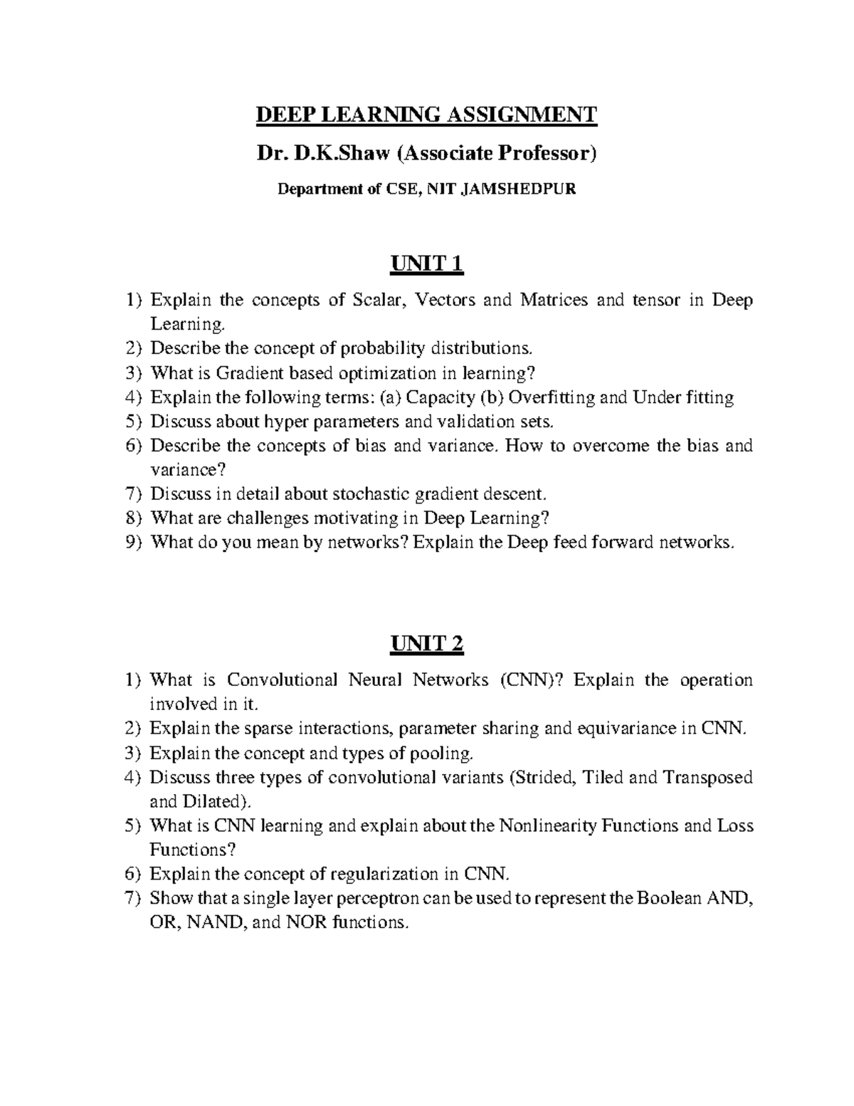 Deep Learning Assignment - DEEP LEARNING ASSIGNMENT Dr. D.K (Associate ...