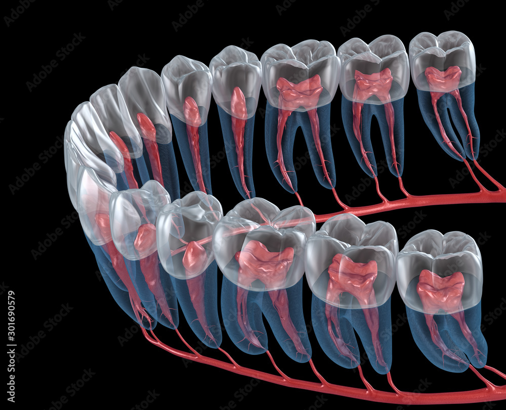 Dental root anatomy, Xray view. Medically accurate dental 3D ...