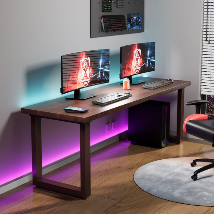 Solid Wood Leg Computer Desk Desktop For Home Log Desk Double Game ...