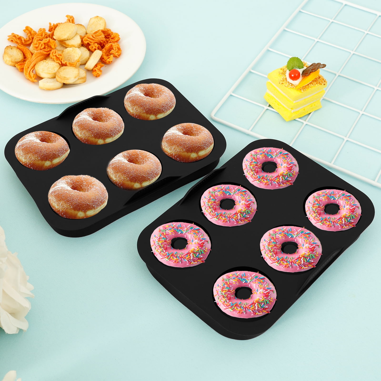 FUYGRCJ 2 Pack Donuts Pan For Baking, 6 Cavity Molds Upgraded Deepened ...