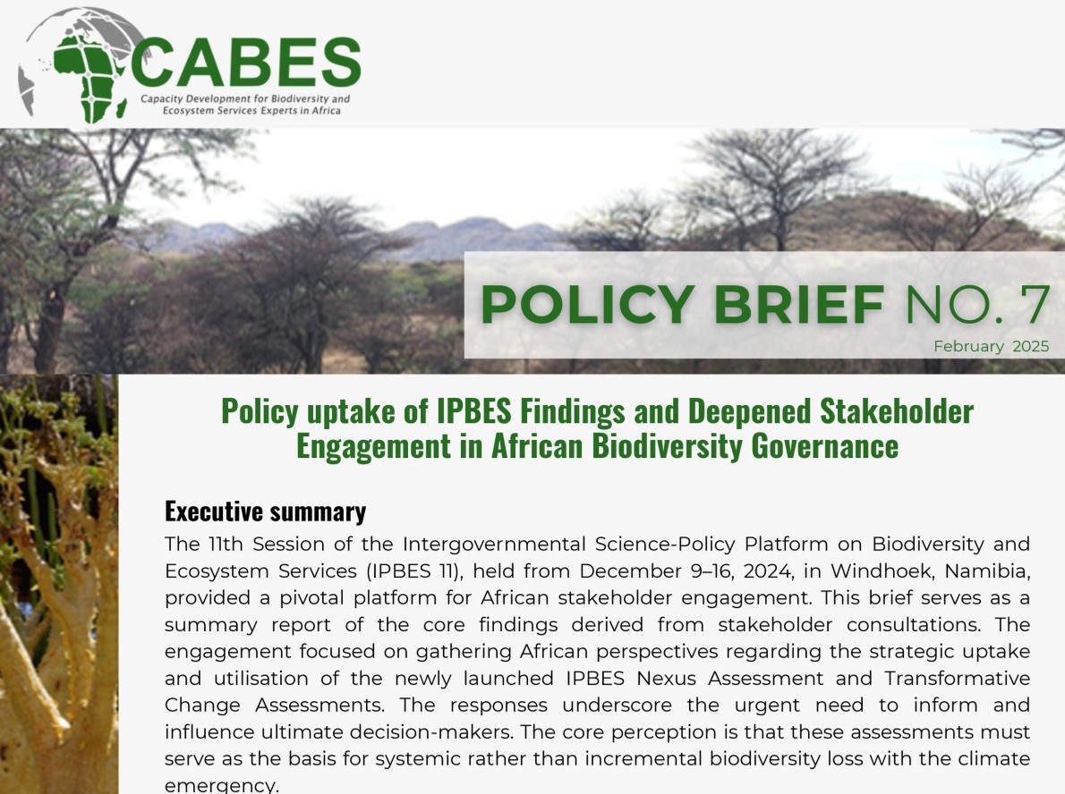 CABES Policy Brief No. 7: "Policy Uptake of IPBES Findings and Deepened ...