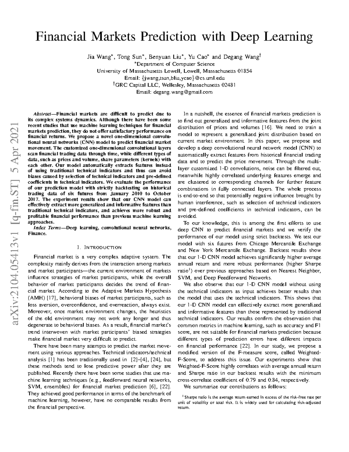 Financial Markets Prediction Using Deep Learning Techniques (CS 2104 ...