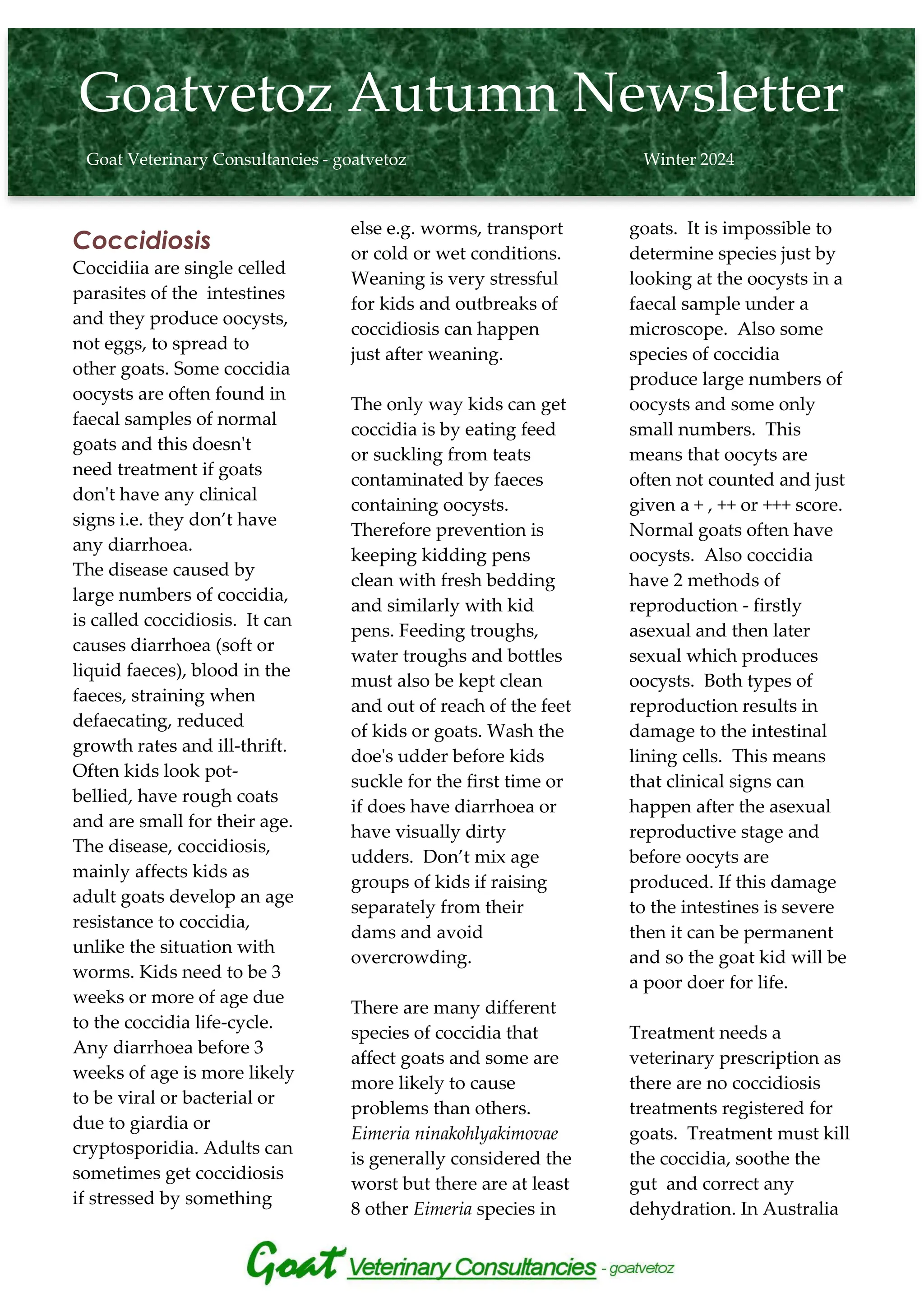 Latest goatvetoz newsletter to keep your goats healthy | PDF