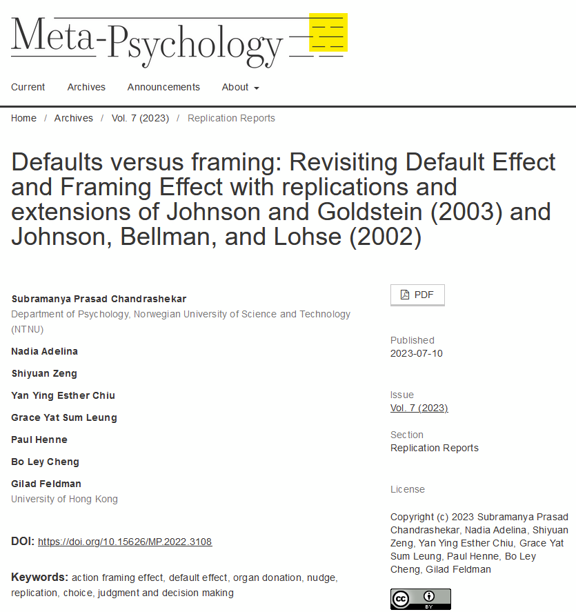 Gilad Feldman on Twitter: "Finally in print: "Defaults versus framing ...