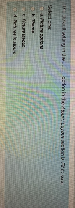 Solved The default setting in the .-... option in the Album | Chegg.com