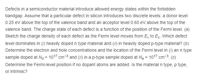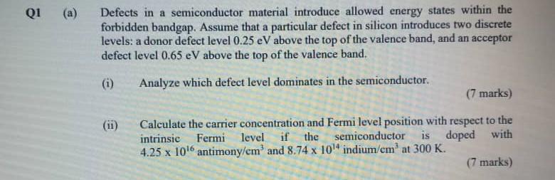 Q1 (a) with Defects in a semiconductor material | Chegg.com