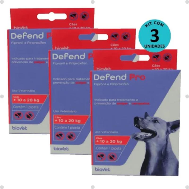 Antipulgas e Carrapatos Defend Pro Cães de 10 a 20 kg (kit 3 unidades ...