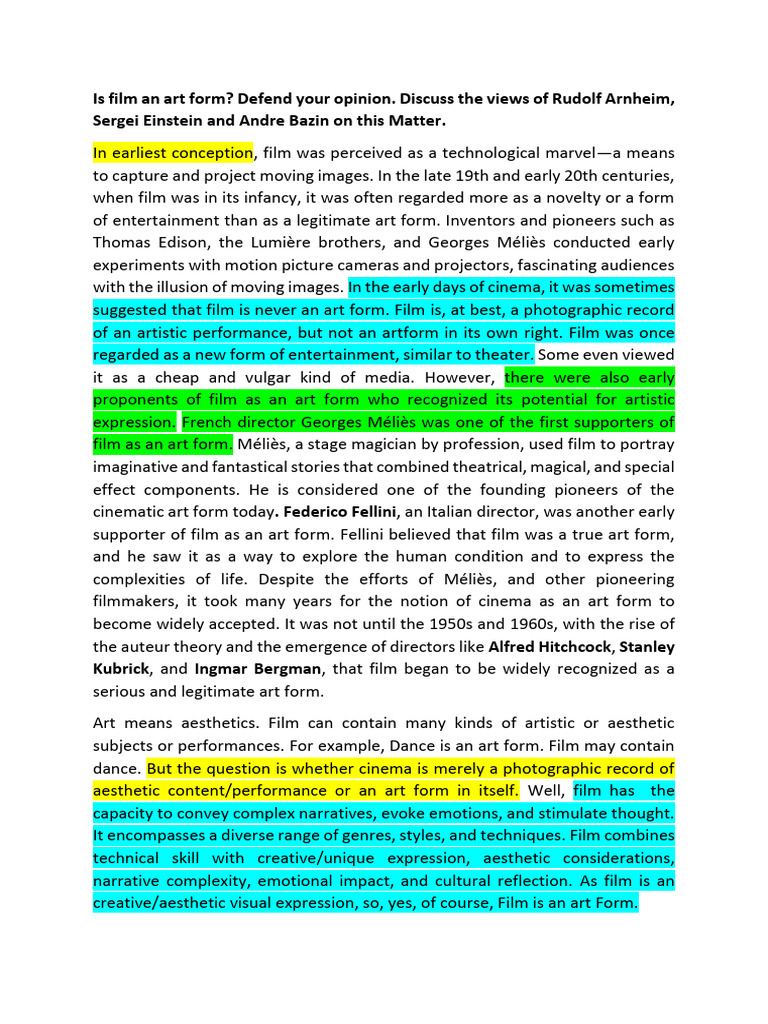 Is Film An Art Form - Defend Your Opinion. Discuss THW Views of Rudolf ...
