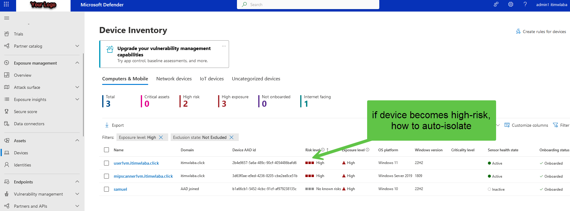 Defender for Endpoint: How isolate device with high risk automatically ...