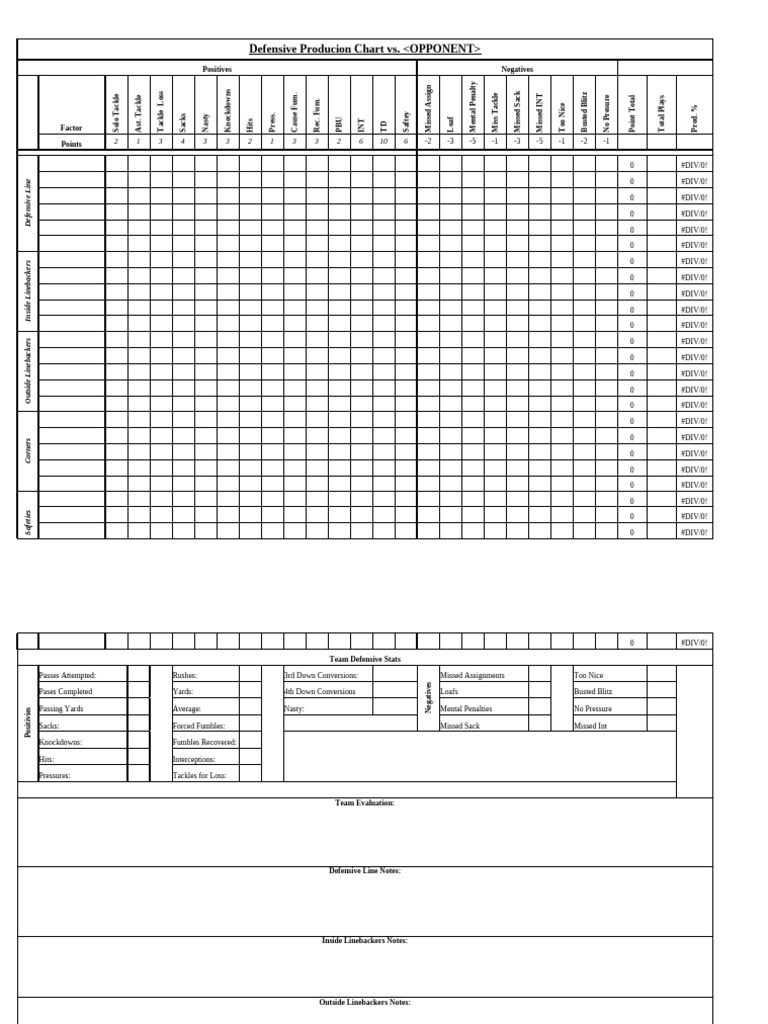 Football Coach Call Sheet - Defensive Gameplan Template - Etsy