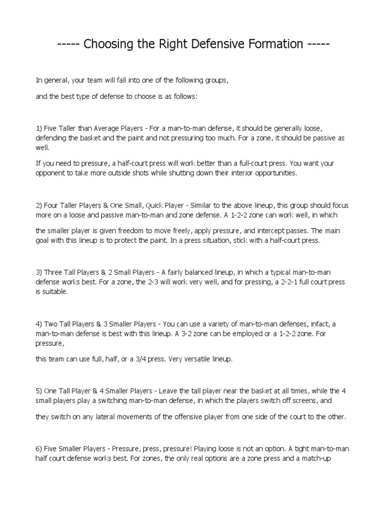 Defensive Tactics: The Most Common Defensive Lineups | PDF | Defender ...