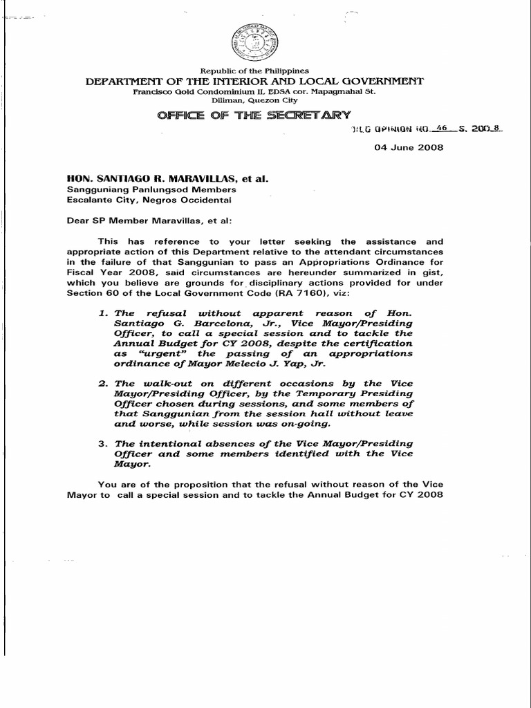 Dilg Lo No. 46, s2008 QJ Matters | PDF