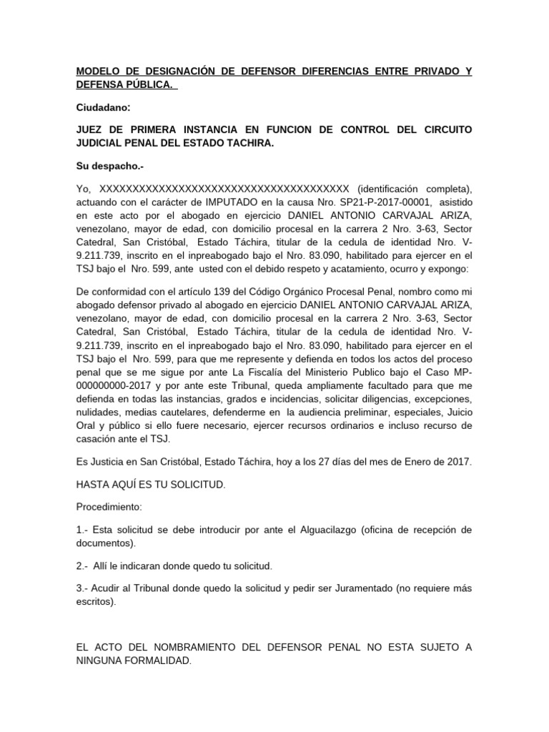 Nombramiento de Defensor Privado en Venezuela | PDF | Ley procesal ...