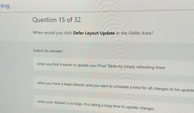 14.8. What is the "Defer Layout Update" button for? | Excel pivot ...