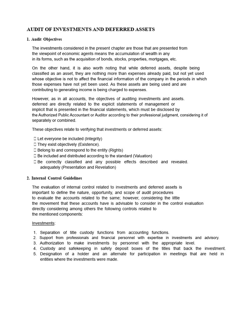 Audit of Investments and Deferred Assets | PDF | Audit | Internal Control