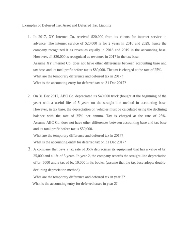 Examples of Deferred Tax Asset and Deferred Tax Liability | PDF