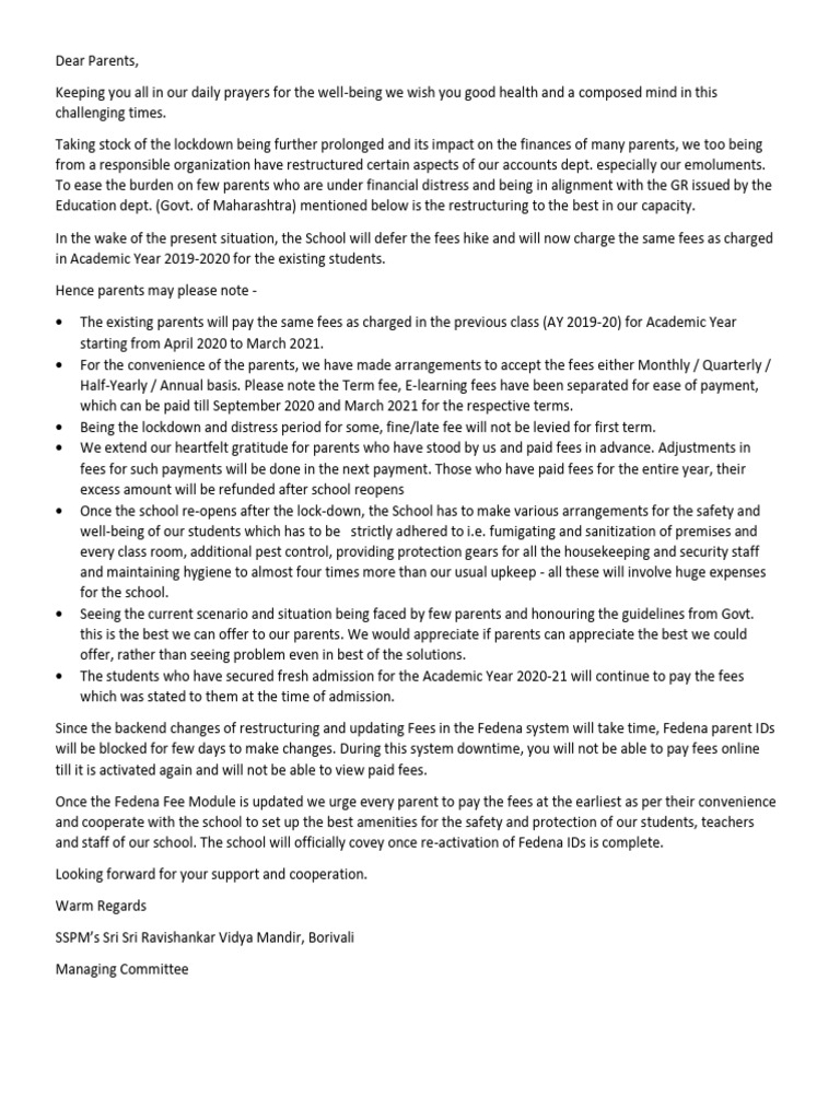 Circular - Fee Hike Deferred 140520e | PDF | Fee