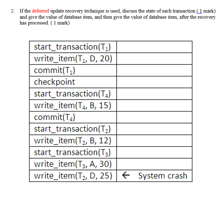 Solved 2. If the deferred update recovery technique is used, | Chegg.com