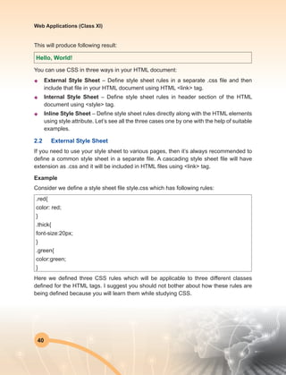 Class 11 Web Applications | Introduction to CSS & Types of CSS ...