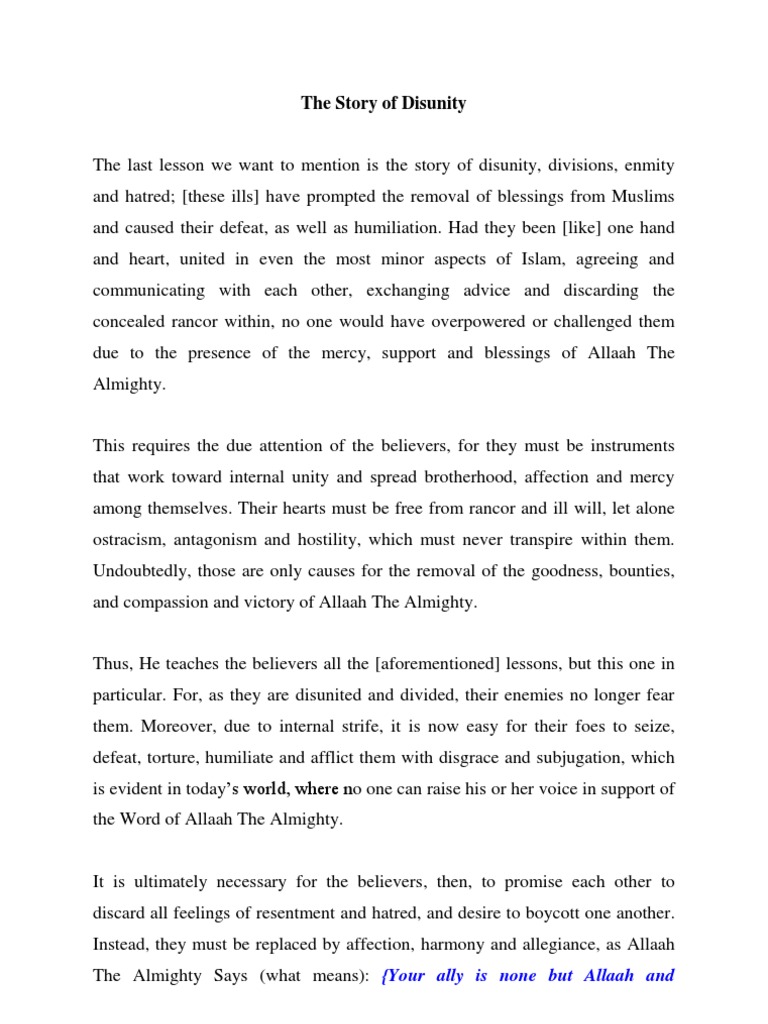 Causes of Divisions & Disunity — LEARN ISLAM
