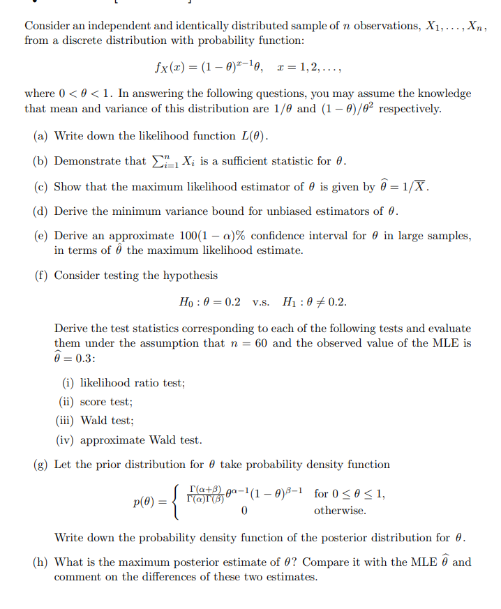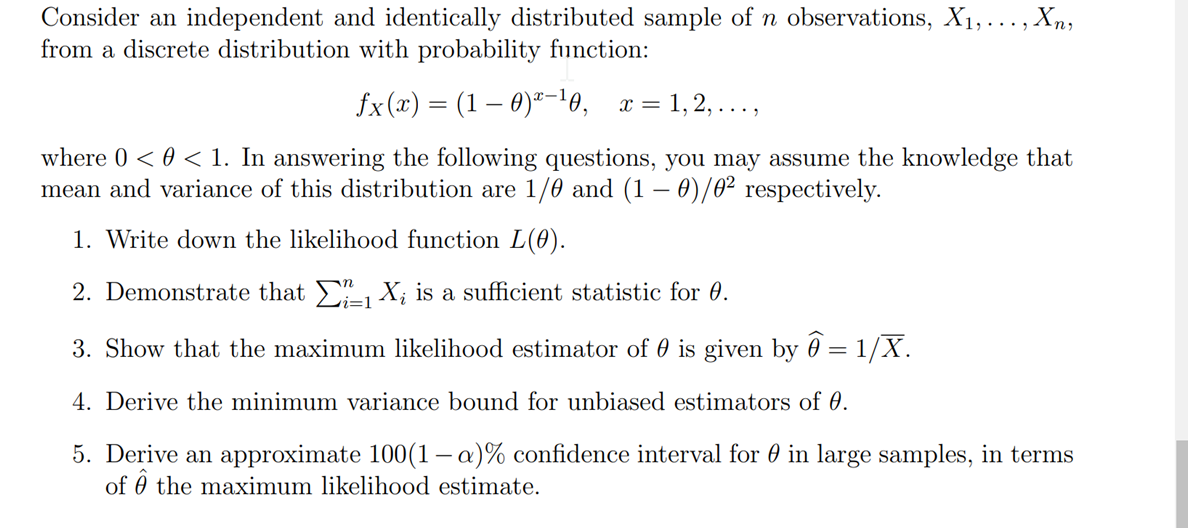 Solved Consider a sample of independent identically | Chegg.com