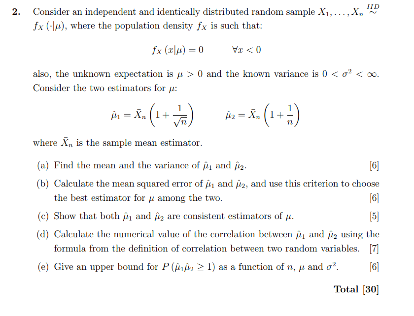 Solved Consider n independent identically distribution (iid) | Chegg.com