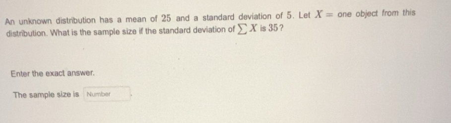 Solved: An unknown distribution has a mean of 25 and a standard ...