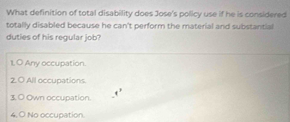 Solved: What definition of total disability does Jose's policy use if ...