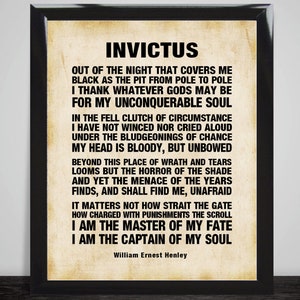 Invictus Poem by William Ernest Henley Inspirational | Etsy