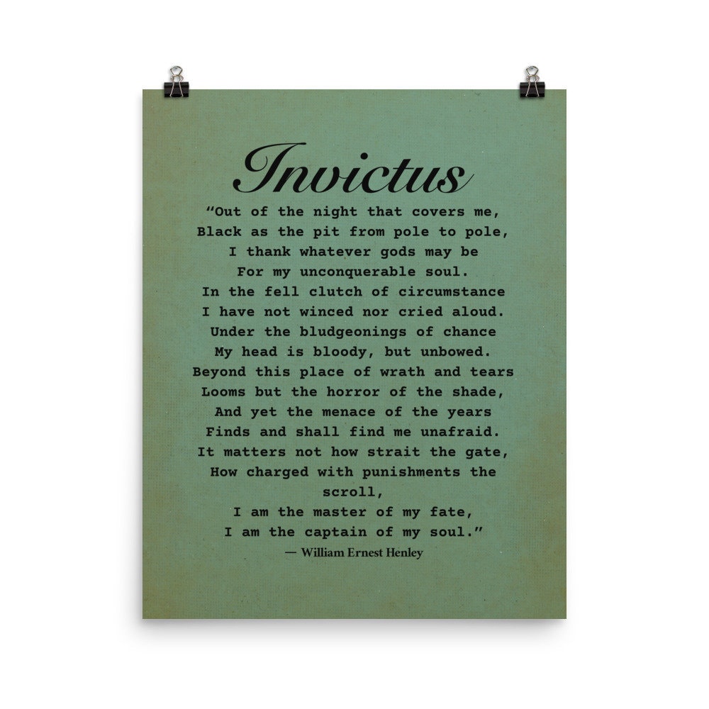 Invictus Invictus Poem by William Ernest Henley Poster Print - Etsy ...