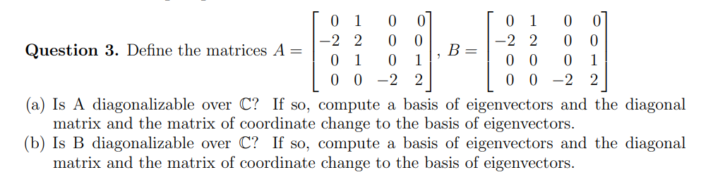 Solved Question 3. Define the matrices | Chegg.com
