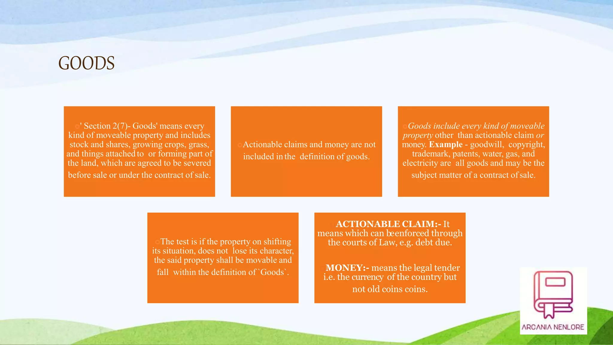 Goods as per sales of goods act | PPTX | Law