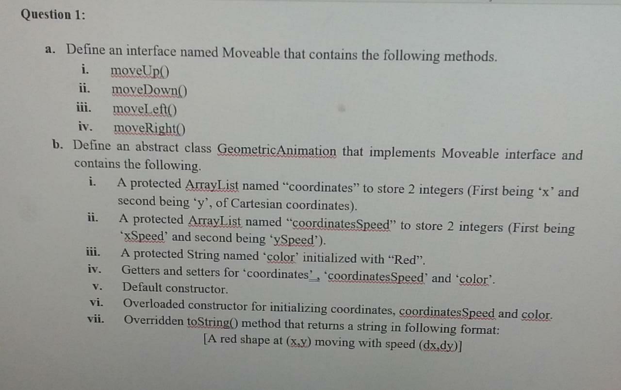 Solved Question 1: a. Define an interface named Moveable | Chegg.com
