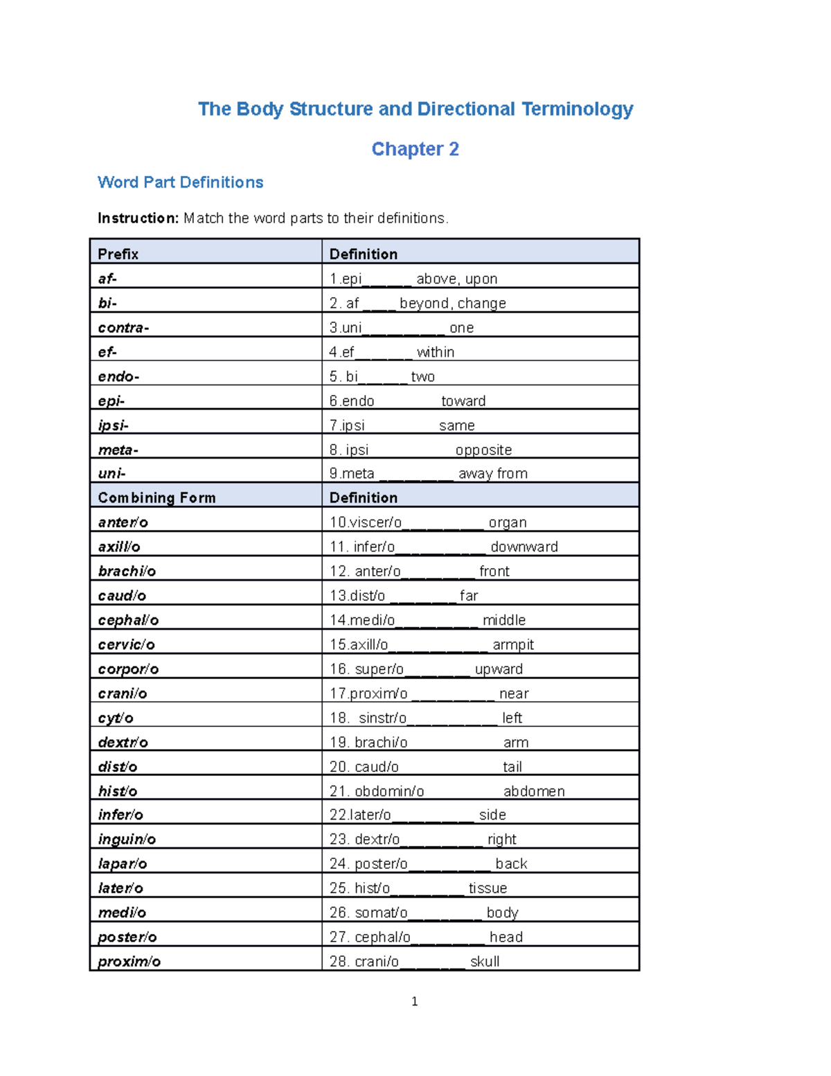 Week 1 Vocabulary & Terminology for 2nd Semester Anatomy - Studocu