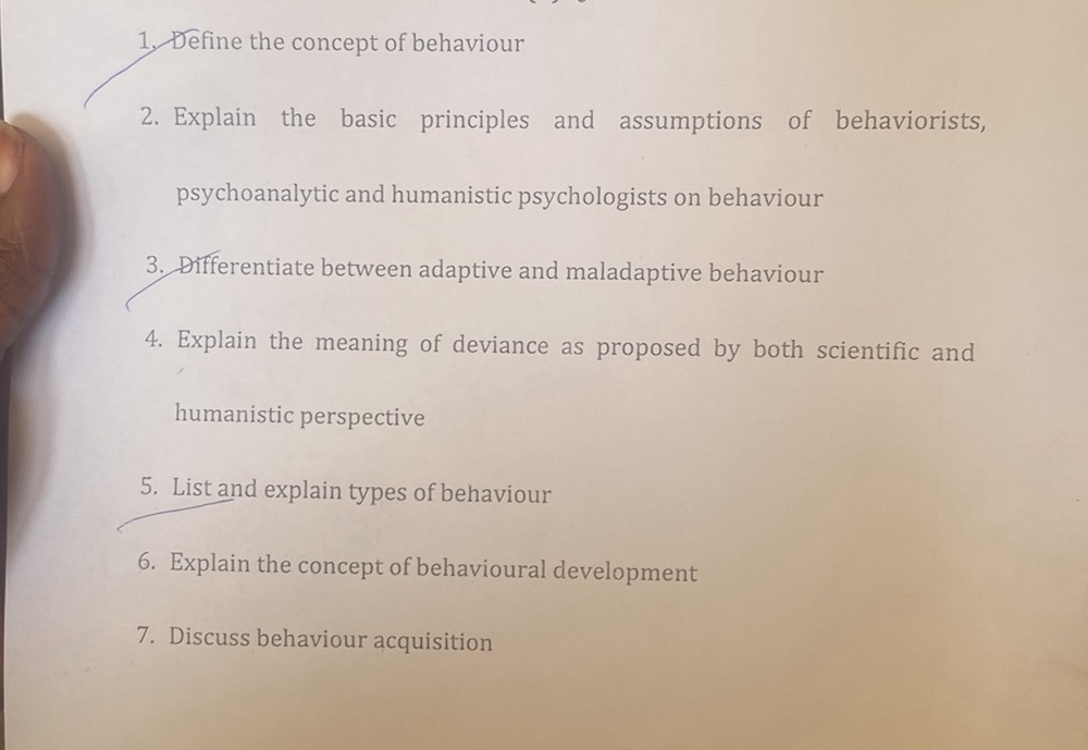 1. Define the concept of behaviour 2. | StudyX