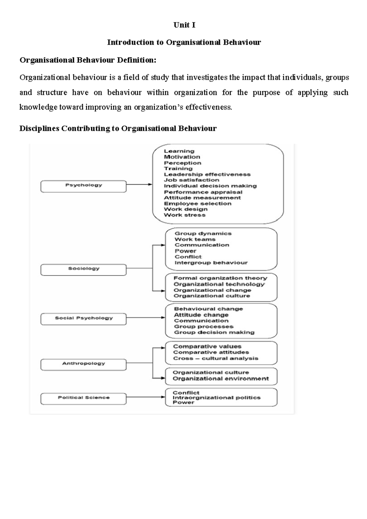 Unit I: Introduction to Organizational Behaviour (OB) Overview - Studocu