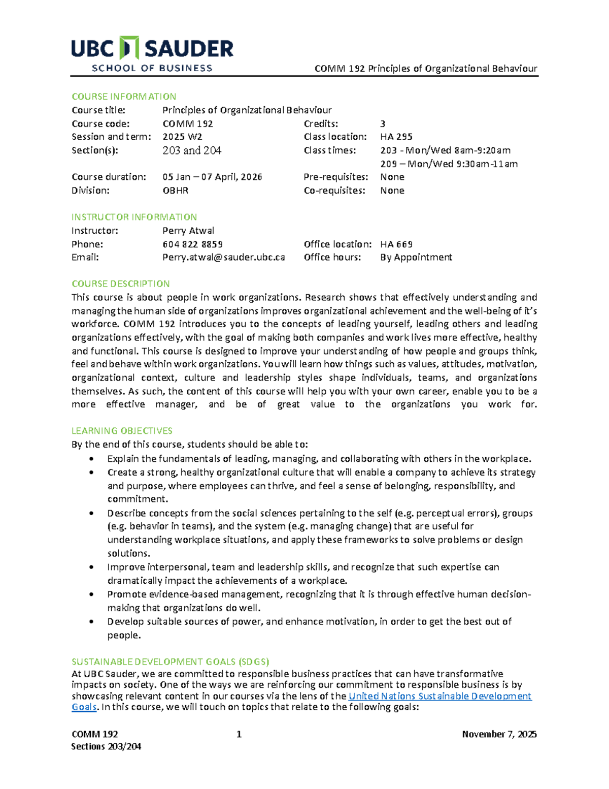 COMM 192 Principles of Organizational Behaviour Syllabus 2026 - Studocu