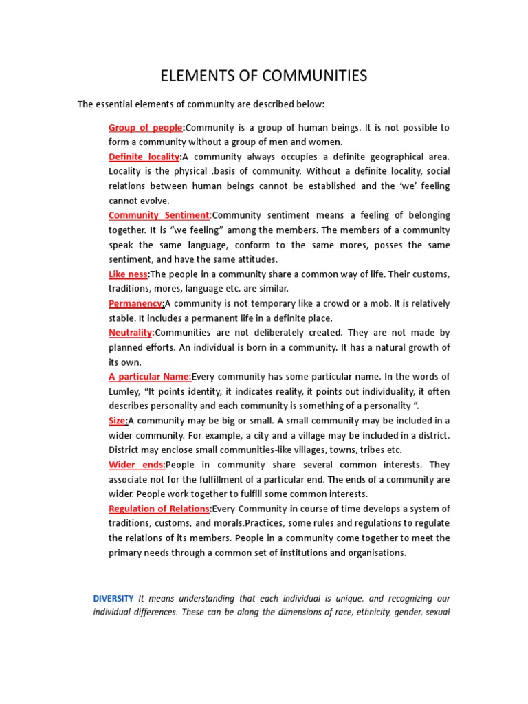 Elements of Communities: Group of People Definite Locality | PDF ...