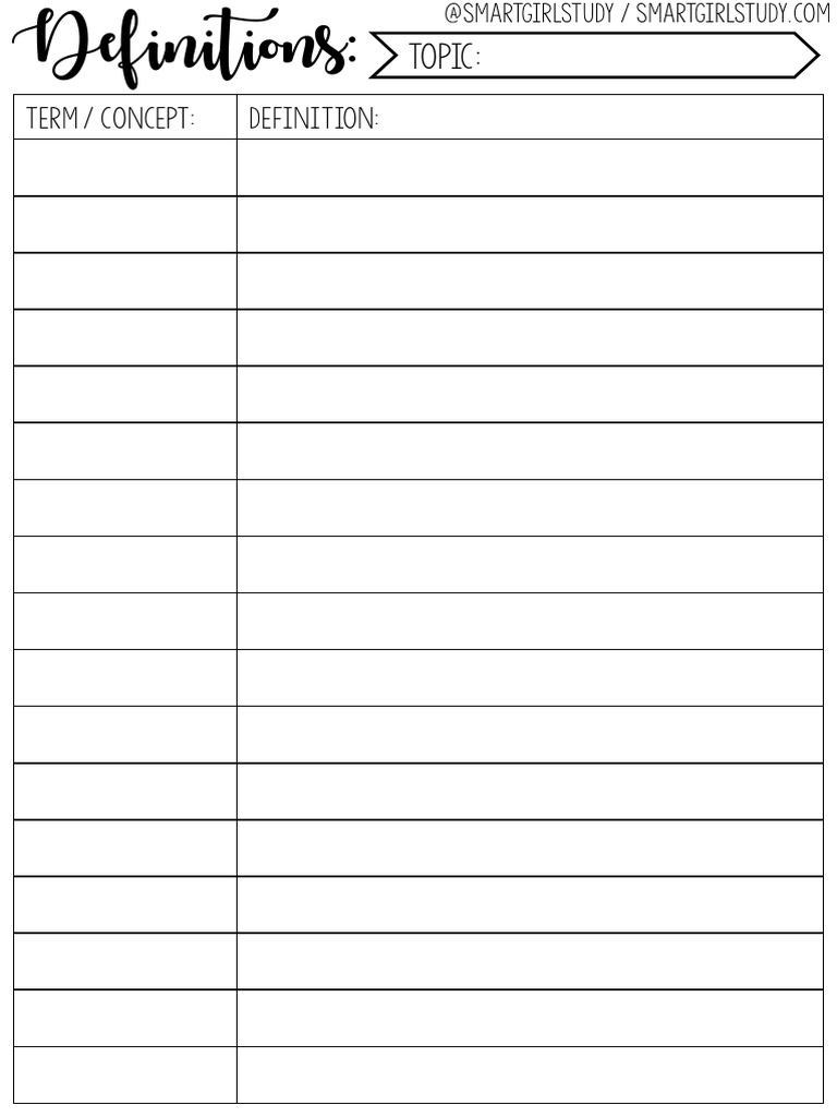 Free Printable Definitions Study Sheet — Krafty Planner | Free ...